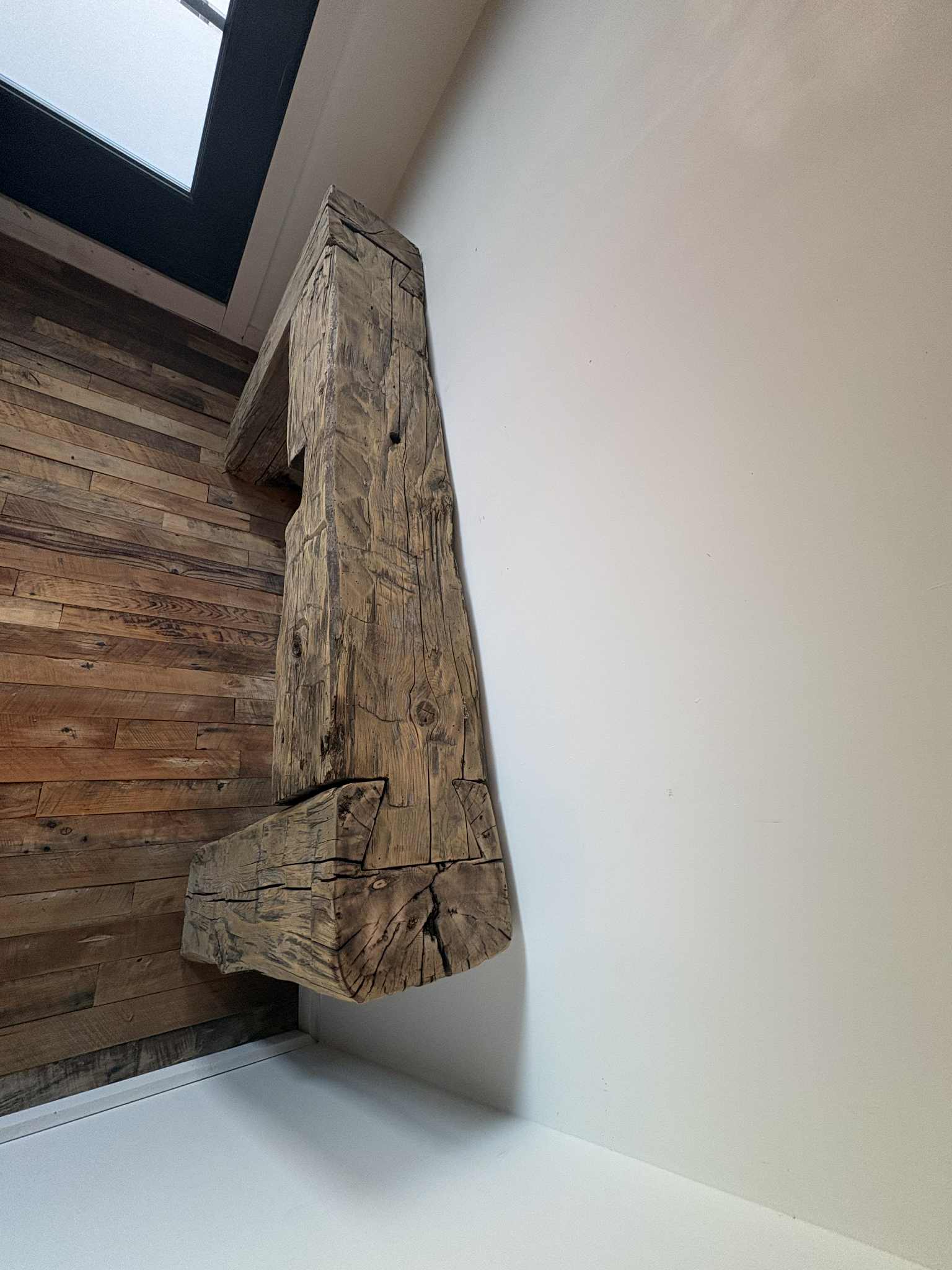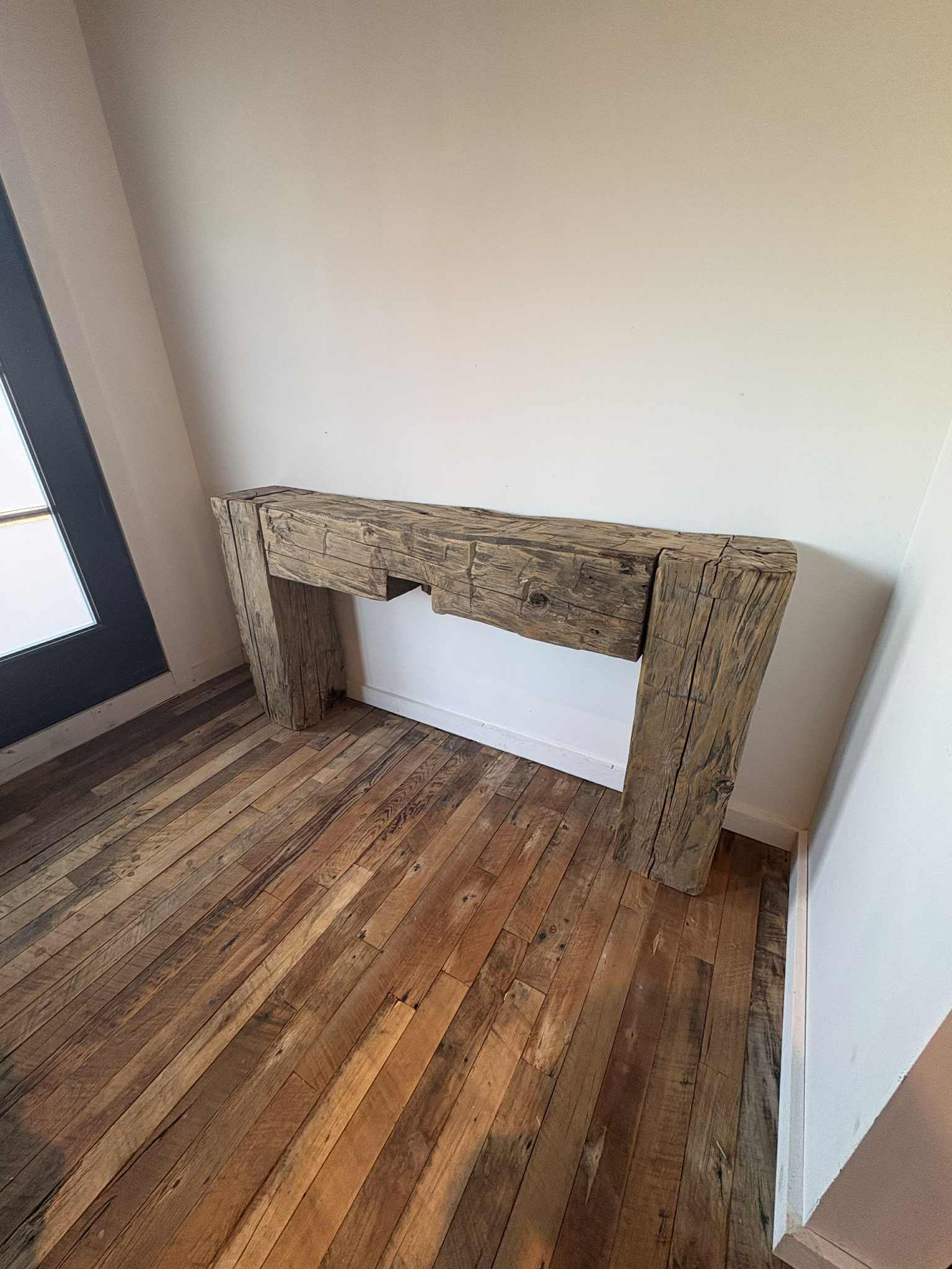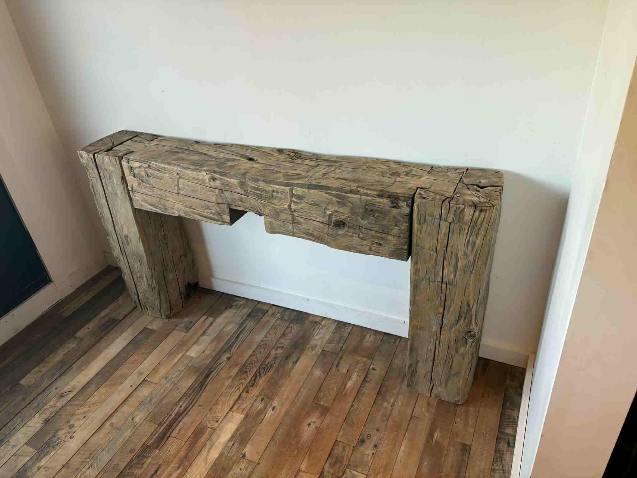 Remises en valeur avec soin, ces poutres retrouvent aujourd’hui une seconde vie sous la forme d’un meuble d’entrée chaleureux et authentique. Sa texture brute et son caractère unique apportent une âme et une présence incomparable à votre espace.